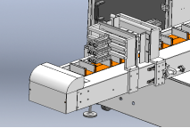 產品由指定形式進入裝盒機前端同步帶。當裝盒機的光電感應到物料通過時內外一體裝盒機進行下盒、裝盒、再進入外盒裝盒機,進行裝盒、插頁、封盒的全部功能,達到最小人力化。
