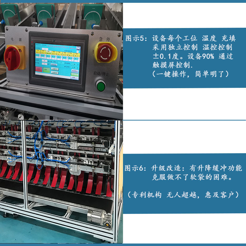 機器標配升降定位緩沖,可以有效防止袋子掉落過程中的液體飛濺,